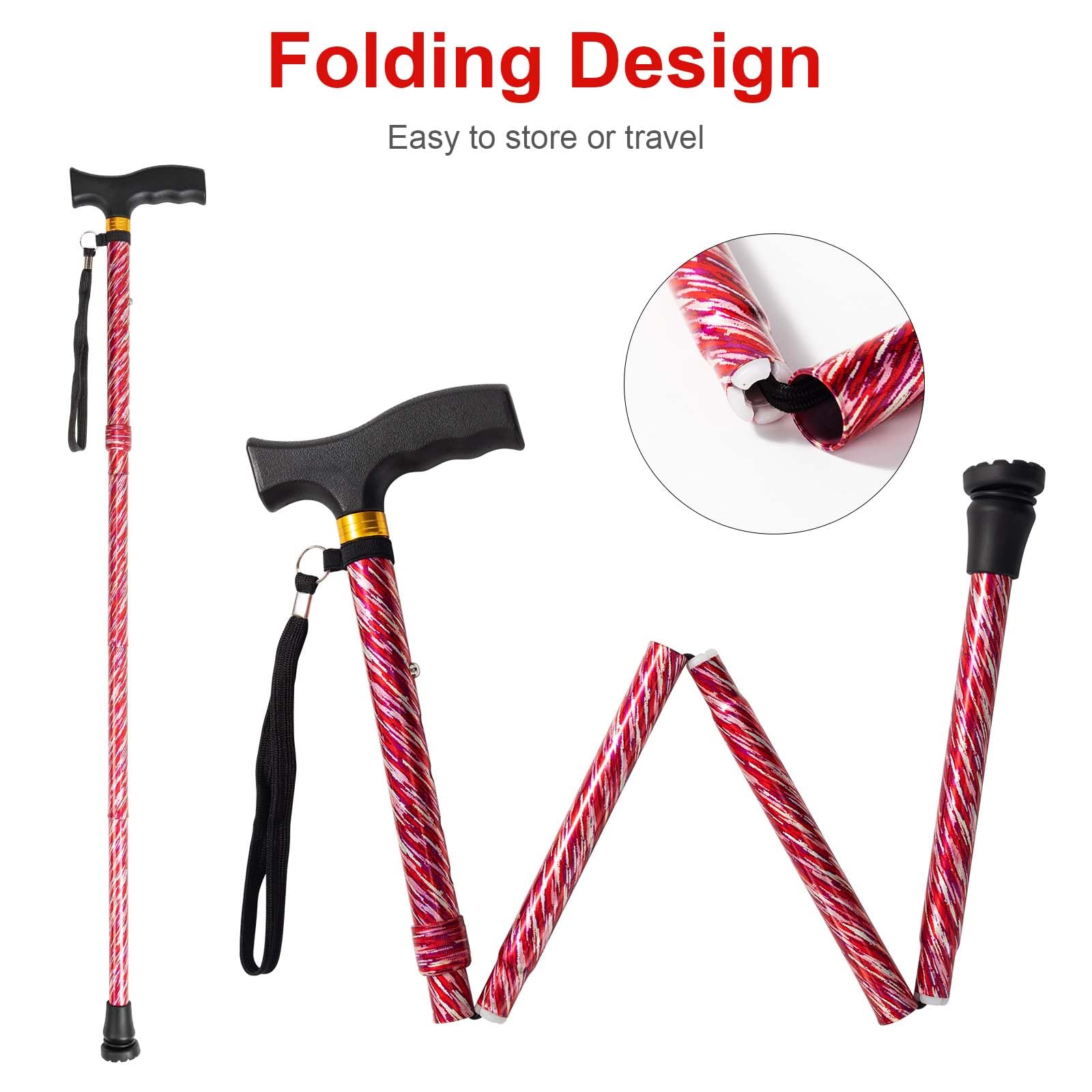 Walking Cane LIXIANG Cane for Man/Woman | Mobility & Daily Living Aids | 5-Level Height Adjustable Walking Stick | Comfortable Plastic T-Handle Portable Walking Stick Folding Cane