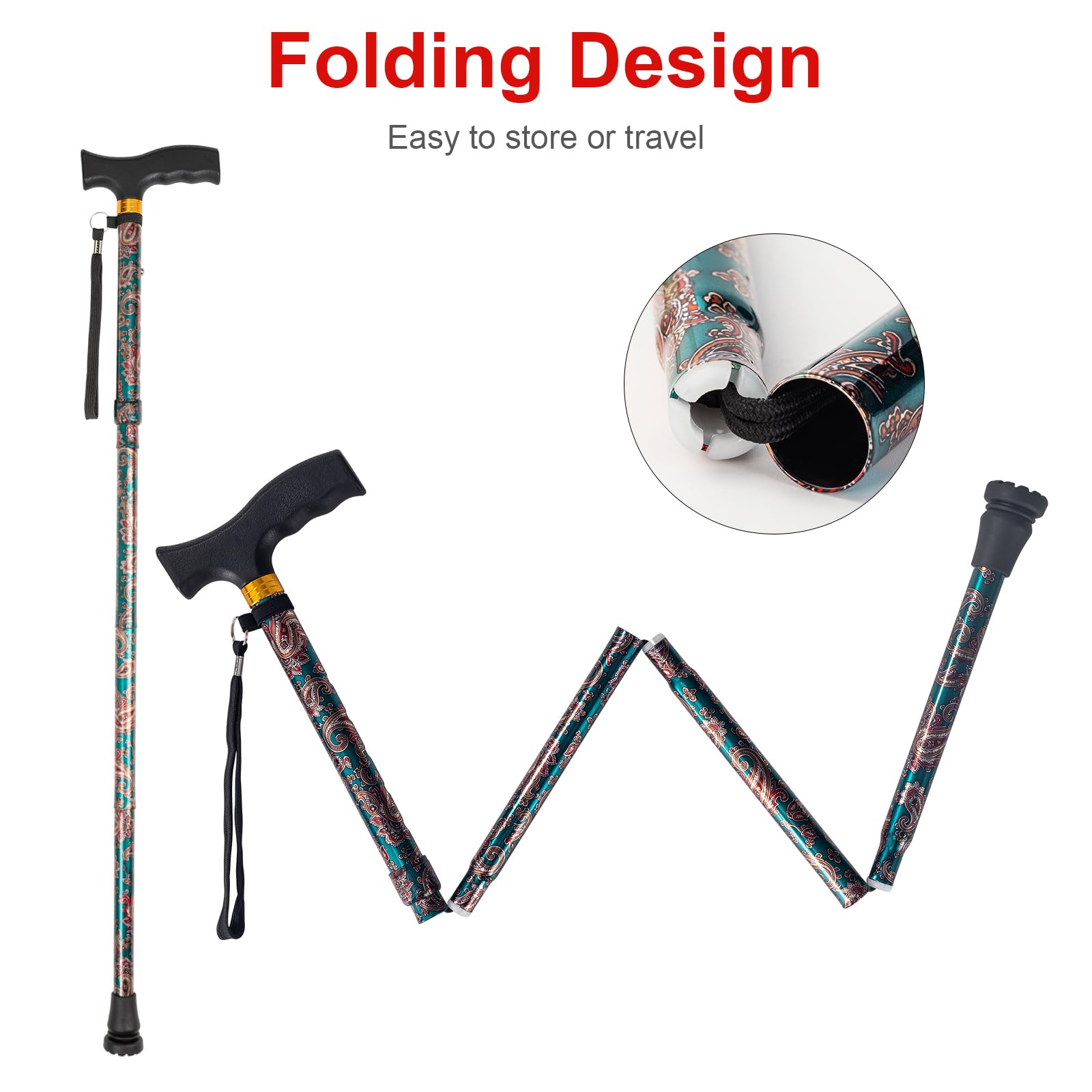Walking Cane LIXIANG Cane for Man/Woman | Mobility & Daily Living Aids | 5-Level Height Adjustable Walking Stick | Comfortable Plastic T-Handle Portable Walking Stick Folding Cane